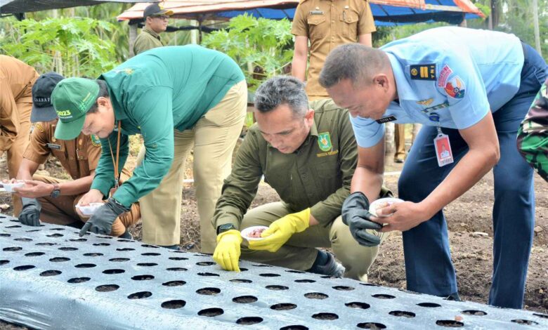 Secara simbolis, Pj Wali Kota Sabang Reza Fahlevi menyerahkan dan ikut menanam bibit bawang merah, di lahan milik Muhammad, salah satu petani penerima bibit bawang tersebut, di Cot Mancang, Gampong Cot Bau, Sukajaya, Sabang.