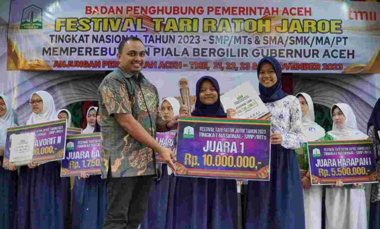 “Oleh karena itu, saya sangat mengapresiasi kegiatan Festival Tari Ratoeh Jaroe Tingkat Nasional Tahun 2023 ini. Kegiatan ini menjadi sarana yang efektif untuk melestarikan, memperkenalkan, dan mengembangkan budaya Aceh kepada masyarakat luas, serta menanamkan nilai-nilai luhur yang terkandung di dalamnya kepada generasi muda,” dalam sambutan Gubernur Aceh yang dibacakan Almuniza Kamal.