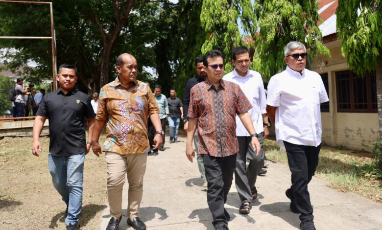 Banda Aceh – Pj Gubernur Aceh Bustami bersama Wakil Menteri Komunikasi dan Informatika RI, Nezar Patria, meninjau lokasi lahan yang rencananya akan dibangun markas kreatif digital untuk anak muda Aceh pada Jumat (29/3/2024).