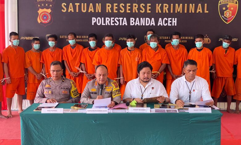 “Ada 25 terduga pelaku perjudian yang ditangkap, setelah dilakukan pemeriksaan, 19 orang memenuhi unsur pidana, sehingga 6 orang lainnya dilepas,” kata Kapolresta Banda Aceh, Kombes Pol Fahmi Irwan Ramli dalam konferensi pers di mapolresta setempat, Rabu (19/6/2024).