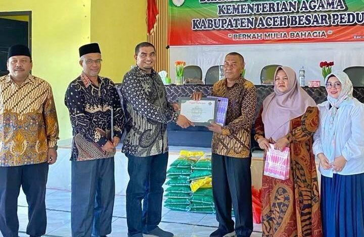 Aceh Besar – Dharma Wanita Persatuan (DWP) Kemenag Aceh Besar membagikan paket sembako untuk 25 honorer Kemenag di Kecamatan Lhong, Aceh Besar, Sabtu (29/6/2024).