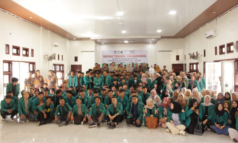 Aceh Besar – Rektor Universitas Abulyatama (Unaya) menyerahkan 256 mahasiswa Kuliah Kerja Nyata (KKN) Semester Genap TA 2023/2024 kepada Camat Kecamatan Ingin Jaya, Kabupaten Aceh Besar.
