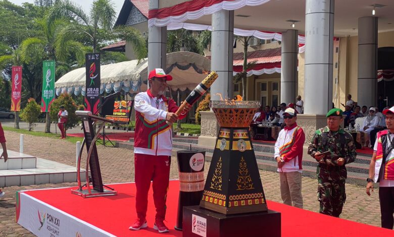 “Hari ini, sebuah moment sakral telah dilaksanakan di Aceh dan Sumut sebagai tuan rumah PON Aceh-Sumut XXI dengan mengusung slogan “Bersatu Kita Juara, Aceh Teuga Aceh Juara” dan pada hari ini pula kita berkumpul di titik ini, sebagai salah satu tahapan dari pelaksanaan PON XXI tahun 2024,” pungkasnya. []