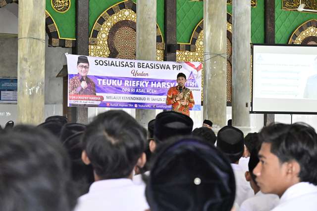 Sosialisasi dan penyerahan beasiswa di Aceh Jaya ini dilakukan Tim Rumoh Aspirasi Teuku Riefky Harsya, didampingi tenaga ahli DPR RI, Aidil Mashendra, di Dayah Darul Abrar pada Rabu (24/10/2024).