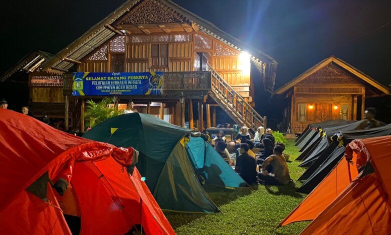 Aceh Besar – Sebanyak 60 peserta pelatihan jurnalis wisata mengikuti kemah bersama dalam rangka mengedukasi mengenalkan destinasi wisata di kabupaten setempat, di Jantho Panorama Park (JPP) di Kota Jantho, Sabtu (14/12/2024) malam.