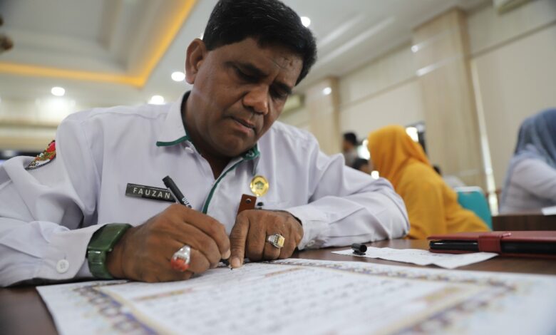 Banda Aceh – Kepala Kanwil Kementerian Agama (Kakanwil Kemenag) Provinsi Aceh, Azhari resmi meluncurkan Gerakan Menulis Mushaf Al-Qur’an (Gemma), yang melibatkan lebih dari 1.200 Guru Pendidikan Agama Islam (PAI) se-Aceh.