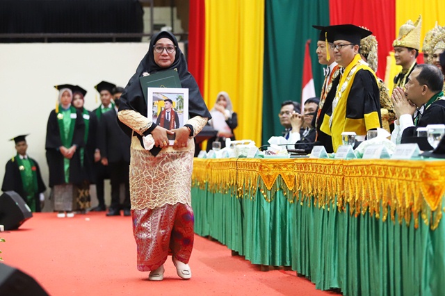 Saat nama Jodi diumumkan MC, Fitri menaiki panggung. Di depan Rektor, air matanya tumpah, itu bukan tangis pertama. Sejak menginjakkan kaki memasuki Gedung AAC, derai air mata sang ibu tak terbendung.