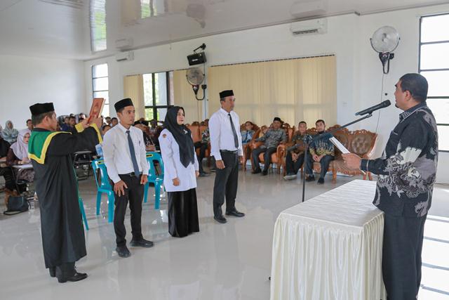 Aceh Besar – Kepala Kantor Kementerian Agama (Kemenag) Kabupaten Aceh Besar, Saifuddin melantik tiga kepala Madrasah Ibtidaiyah Negeri (MIN) lingkungan Kemenag setempat yang berlangsung di Aula PLHUT Kantor Kemenag Aceh Besar, Jantho, Kamis (3/7/2025).