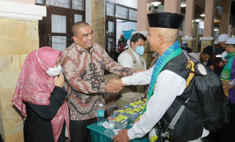 Banda Aceh – Kepala Kantor Kementerian Agama Kabupaten Aceh Besar, Saifuddin menyambut langsung kepulangan 367 jemaah haji asal Aceh Besar yang tergabung dalam kelompok terbang (kloter) BTJ-11 di Asrama Haji Embarkasi Aceh, Selasa (9/7/2025).