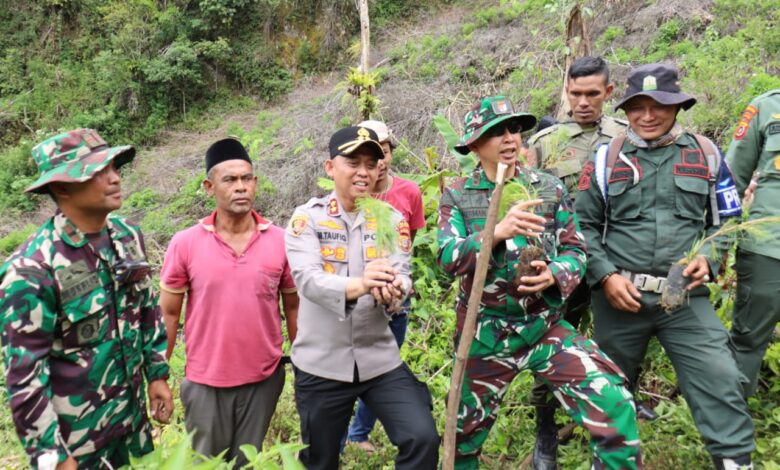 Aceh Tengah – Kapolres Aceh Tengah, AKBP M Taufiq menanam 1.500 bibit pohon pinus di Desa Nosar, Kecamatan Bintang, Kabupaten Aceh Tengah, Rabu (1/10/2025).