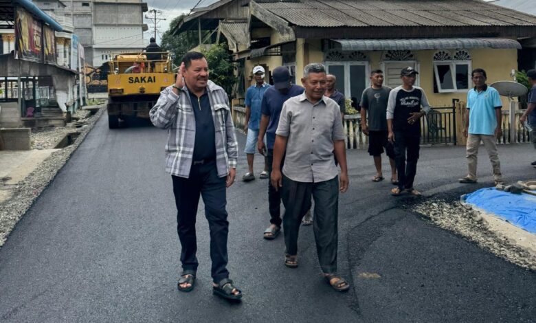 Nagan Raya – Bupati Nagan Raya Dr. TR Keumangan SH., MH meninjau pembangunan jalan aspal yang dibiayai APBK di Desa Serba Jadi, Kecamatan Darul Makmur, Rabu (19/11). Dalam kunjungan itu, ia didampingi Anggota DPRK dari Fraksi Partai Golkar, Sarimin, serta sejumlah tokoh masyarakat.