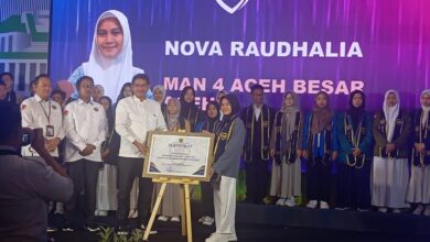 Aceh Besar – Siswi Madrasah Aliyah Negeri (MAN) 4 Aceh Besar, Nova Raudhalia menerima Piagam Penghargaan sebagai Inisiator Muda Moderasi…