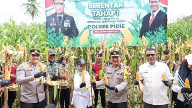 Pidie – Wakapolda Aceh, Brigjen Misbahul Munauwar melakukan panen raya jagung tahap I secara serentak di Desa Tanjong, Kecamatan Kembang…