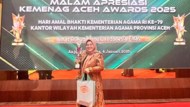 Banda Aceh – Ketua Dharma Wanita Persatuan (DWP) Kementerian Agama (Kemenag) Aceh Besar, Ny. Yasmaidar berhasil meraih juara 3 dalam…